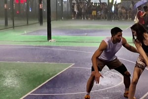 情趣篮球第一人!和小姐姐雨中1v1