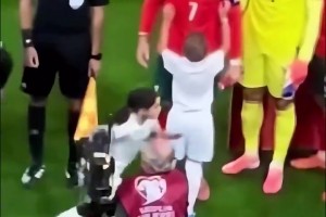 偶像!现场直拍:赛前小球童求抱抱,C罗欣然接受俯身满足要求!