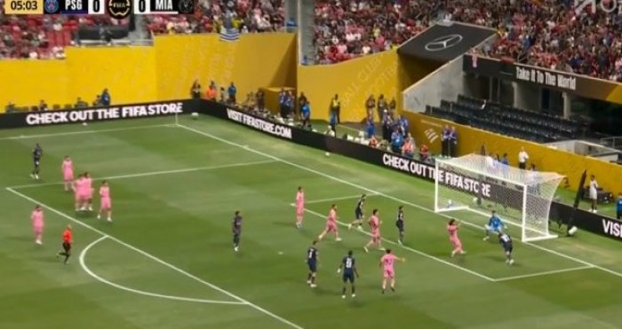 杜埃造阿维莱斯乌龙!第45分钟,杜埃右路下底传中,皮球打在阿维莱斯身上折射,随后飞进自家大门,巴黎圣日耳曼3-0迈阿密国际!↓