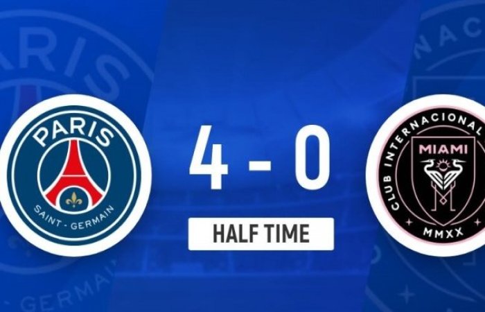 上半场比赛结束,巴黎圣日耳曼暂时4-0领先迈阿密国际。